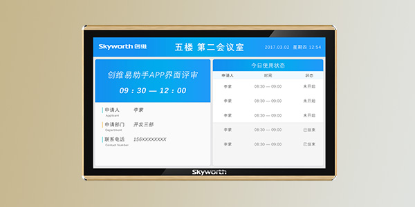 創維為解決傳統會議的繁瑣、低效體驗,提供軟硬件結合的智能會議室解決方案,將云服務、移動APP、智能辦公顯示終端、高清屏體以及智控辦公鎖融入傳統會議場景,極大提升辦公效率與質量,帶來"綠色無紙化、**、便捷、智能、時尚"的智能會議新體驗。